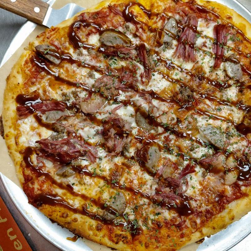 Tomato-based, corned beef, pepperoni, sausage, ground beef, bacon, HP Drizzle